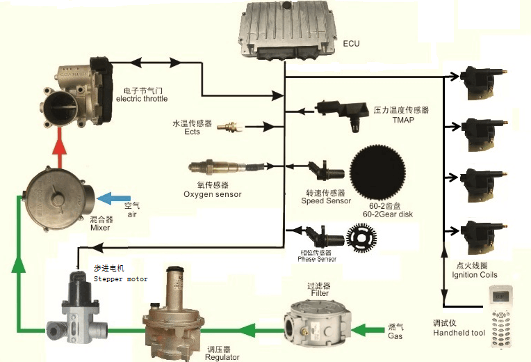 ●采用步進(jìn)電機(jī)精確控制空燃比,可實(shí)現(xiàn)理論空燃比或稀薄燃燒控制,更好的滿足排放需求